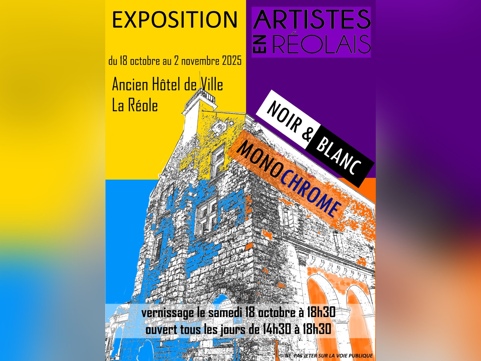 Les Artistes en Réolais présentent l’exposition d’automne du 18 octobre au 2 novembre 2025 à l’Ancien Hôtel de Ville de La Réole, explorant le thème noir et blanc/monochrome.