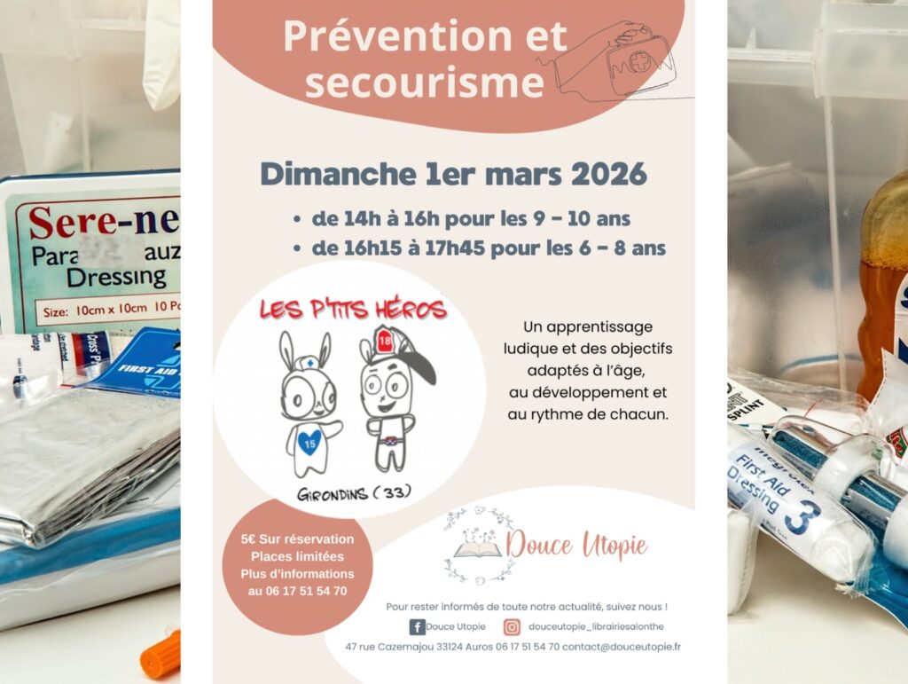 Venez avec vos enfants participer à cet atelier animé par « les petits héros girondins » qui vous présentera les gestes de prévention et de secourismes. Ateliers adaptés à l’âge et au rythme d’apprentissage de chacun. Plusieurs sessions prévues, réservation conseillée.